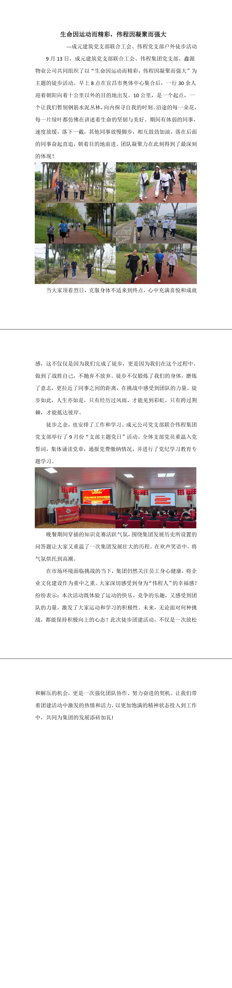 生命因运动而精彩,伟程因凝聚而强大