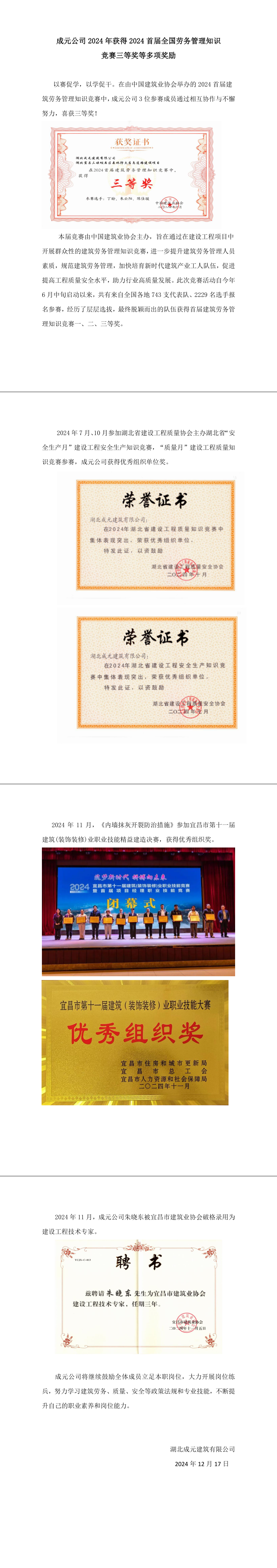 以赛促学,以学促干-成元公司2024年获得多项奖励